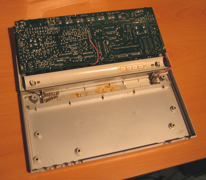 Once you have removed the battery holder, you can lift the 303 circuitry out of the upper part of the case, and fold it over, placing it back into the rear part of the case, as shown: