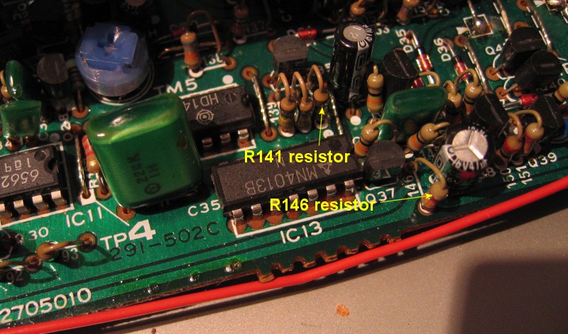 And here are the corresponding pads to de-solder for removal of these resistors, along with the wires to attach from the '303 CPU' connector: