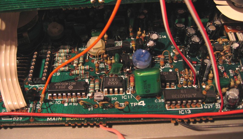 Once IC9, R59, R141 and R146 have been removed and replaced with the socket and 5 wires, your 303 board should look like this:
